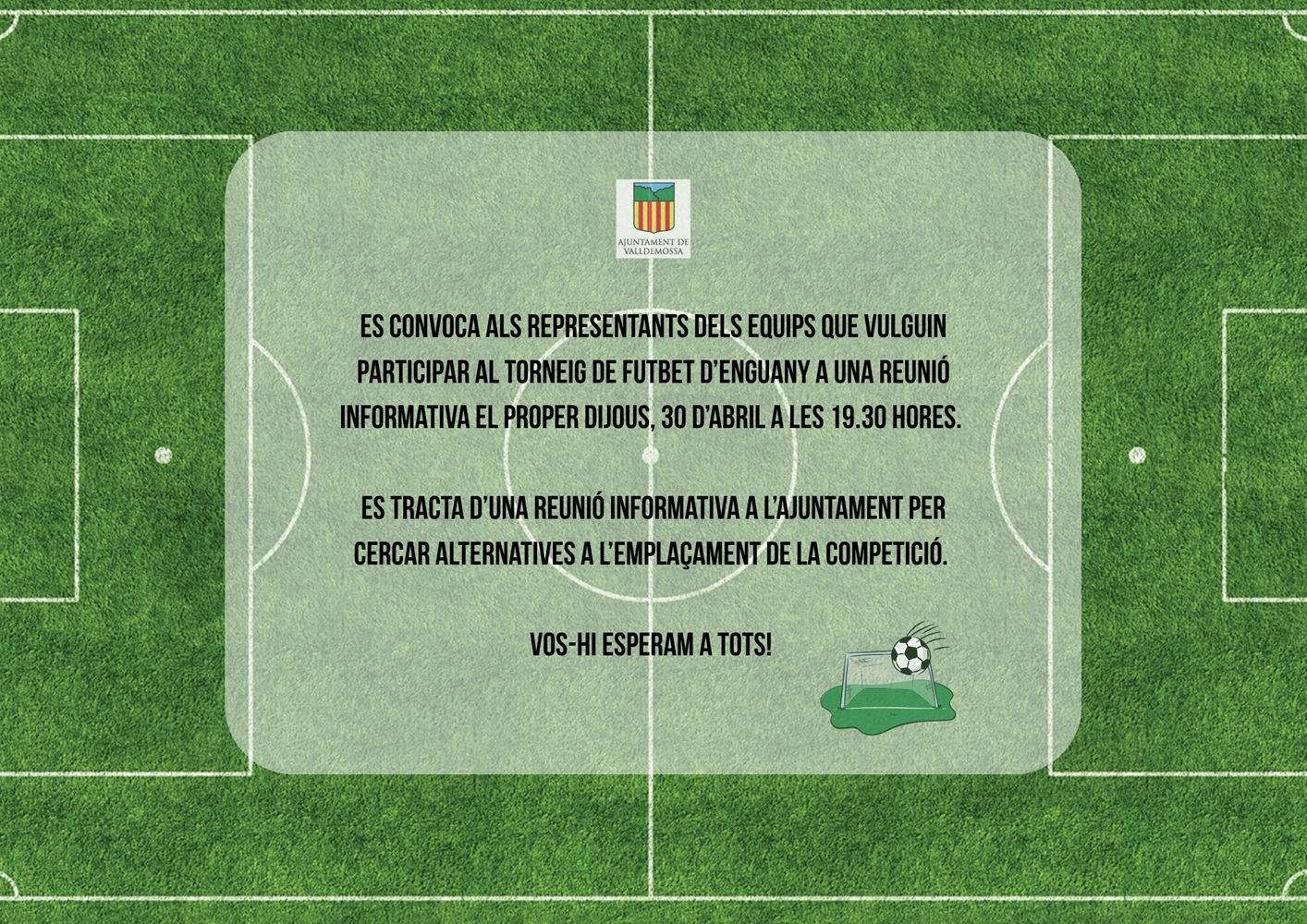 Es convoca als representants dels equips que vulguin prendre part al Torneig de Futbet 2026 a una reunió informativa a l'ajuntament per tal de cercar alternatives a l'emplaçament de la competició.