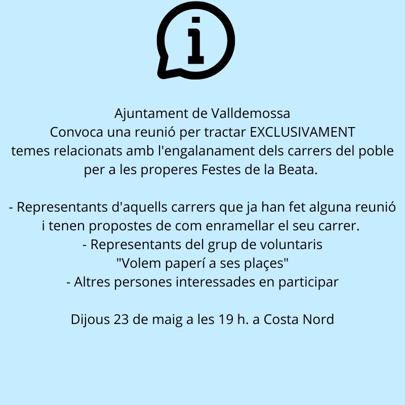 Convoca una reunió per tractar EXCLUSIVAMENT temes relacionats amb l'engalanament dels carrers del poble