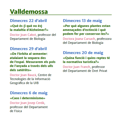 Segona conferència «De l'òrbita al sementer: atalaiant la sequera des de l'espai. Mesurarem els pols de l'anyada a través dels ulls dels satèl·lits», a càrrec del Doctor Joan Bauzà.