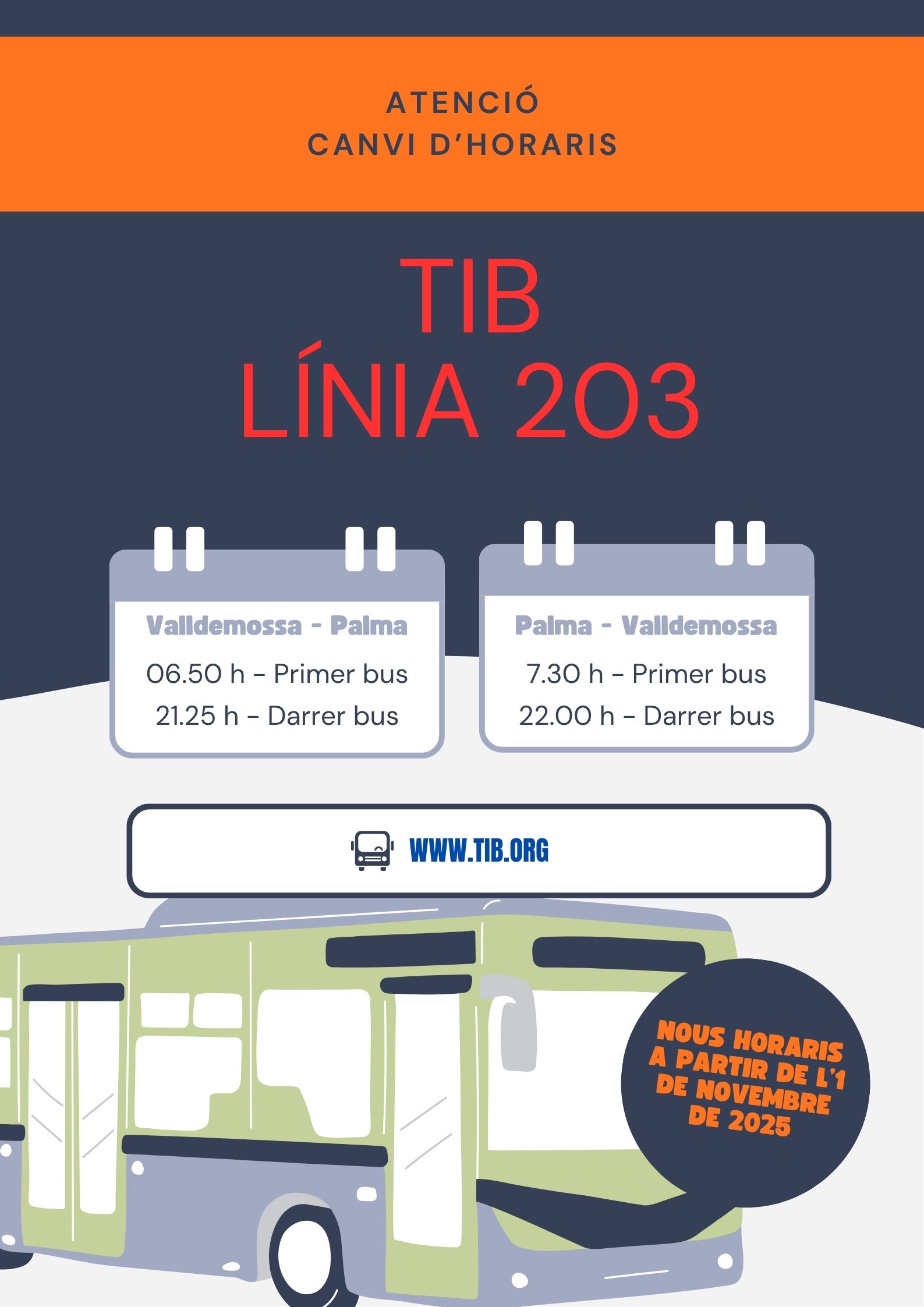 Canvi d'horaris L 203 del TIB