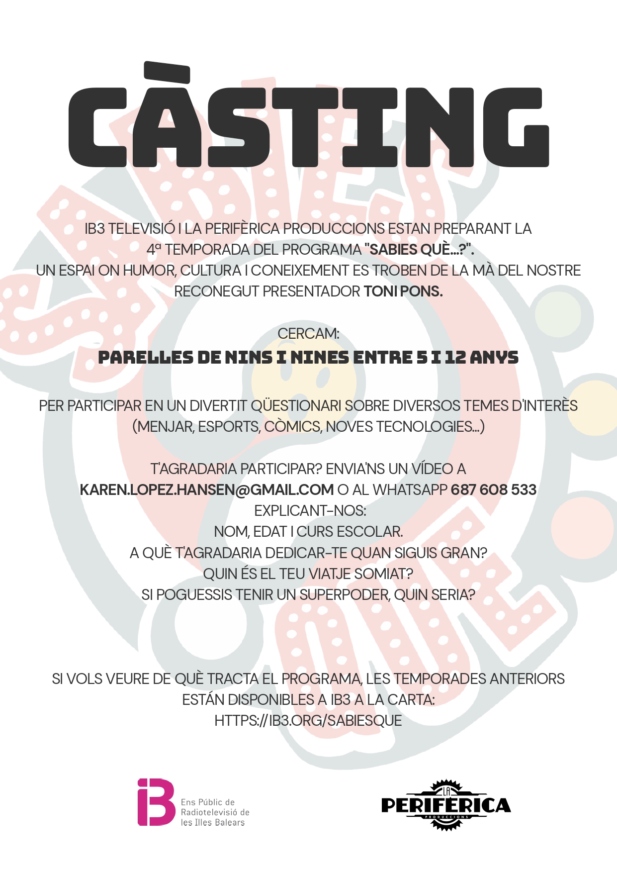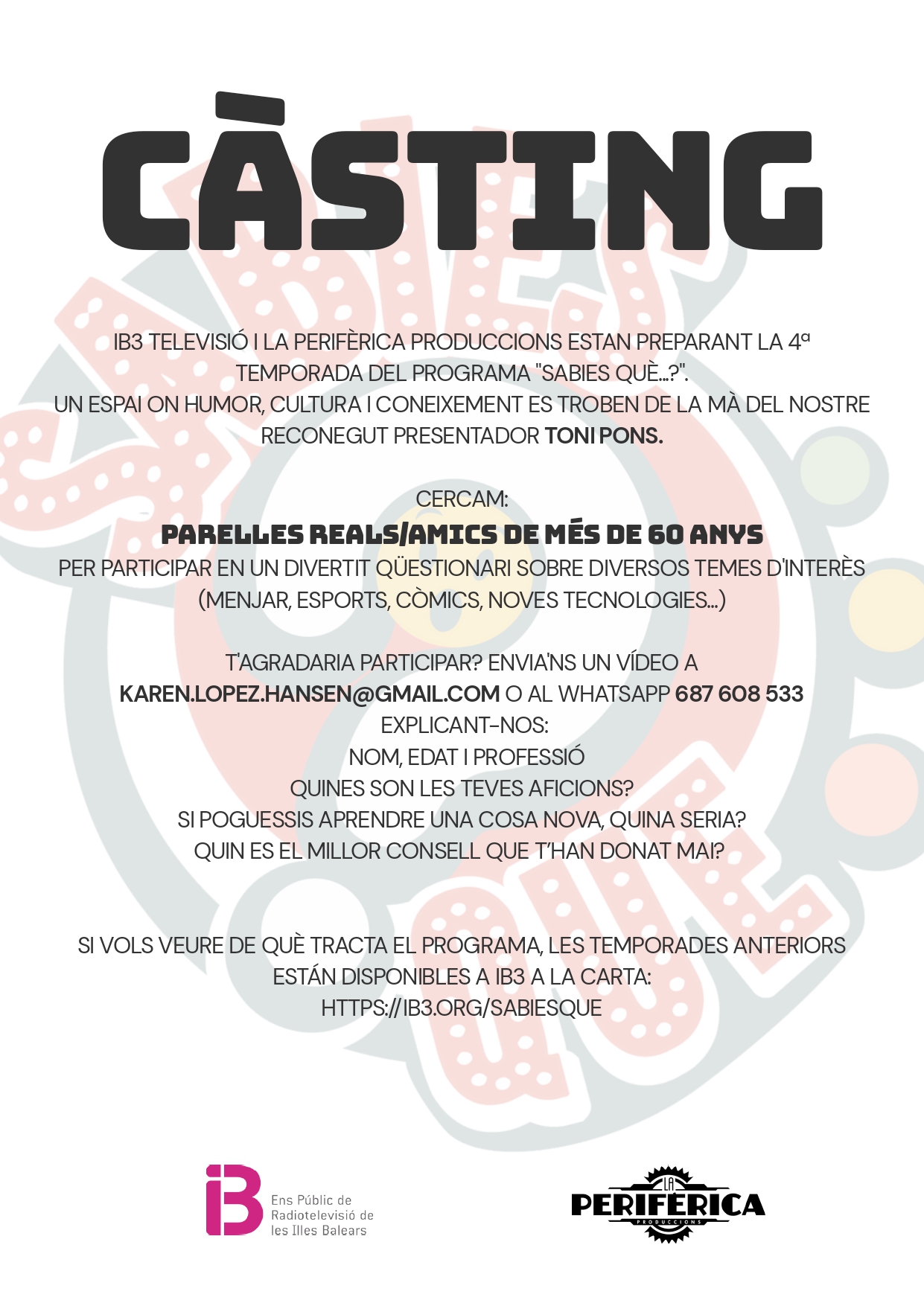 Càsting pel programa "Sabies què" d'IB3