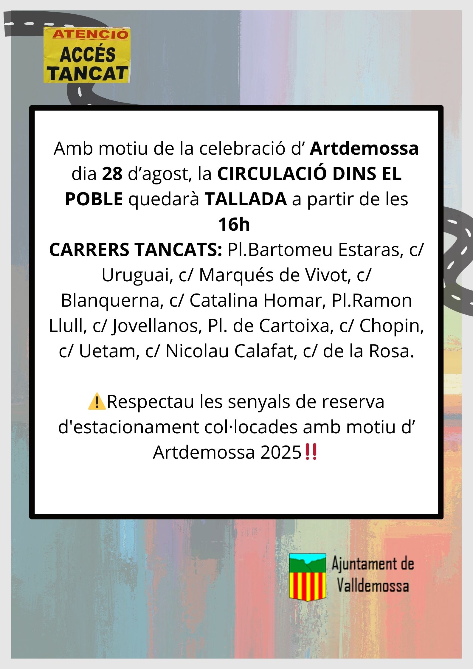 circulacio tancada dins el poble partir de les 16h dia 28 dagost