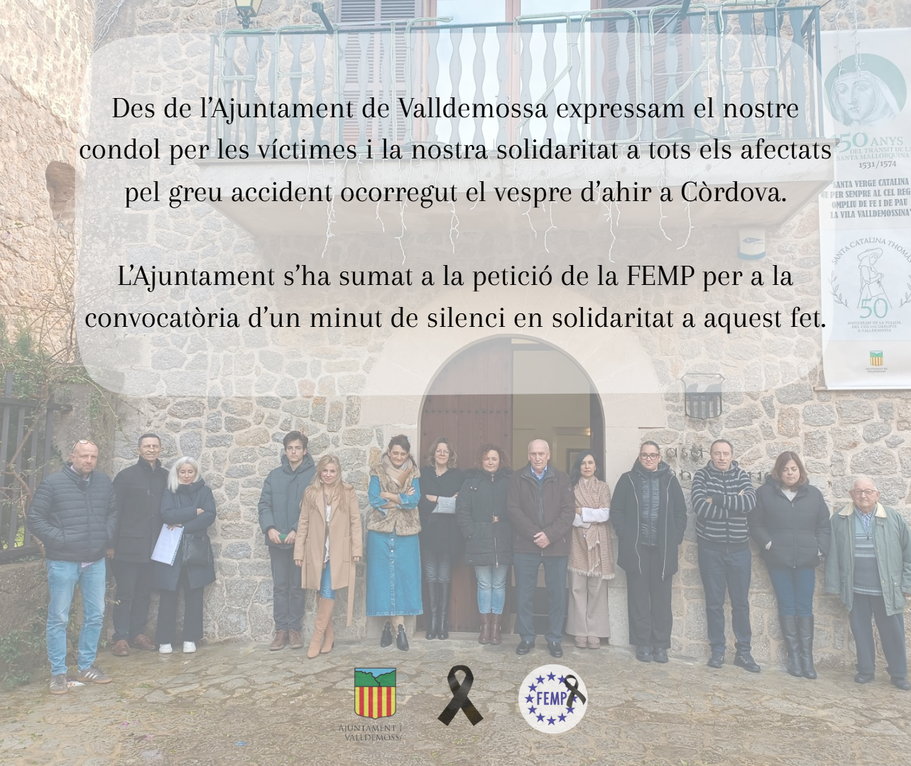 Des de l’Ajuntament de Valldemossa volem expressar el nostre més sentit condol a les víctimes i traslladar la nostra solidaritat a totes les persones afectades pel greu accident ocorregut ahir vespre a Còrdova.