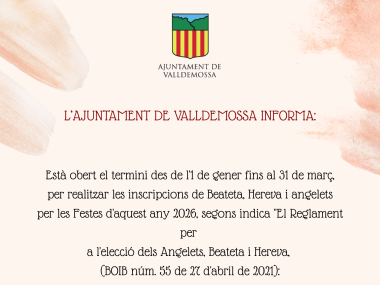 Obert el termini des de l'1 de gener fins al 31 de març per realitzar les inscripcions de Beateta, Hereva i Angelets per les Festes d'aquest any 2026.