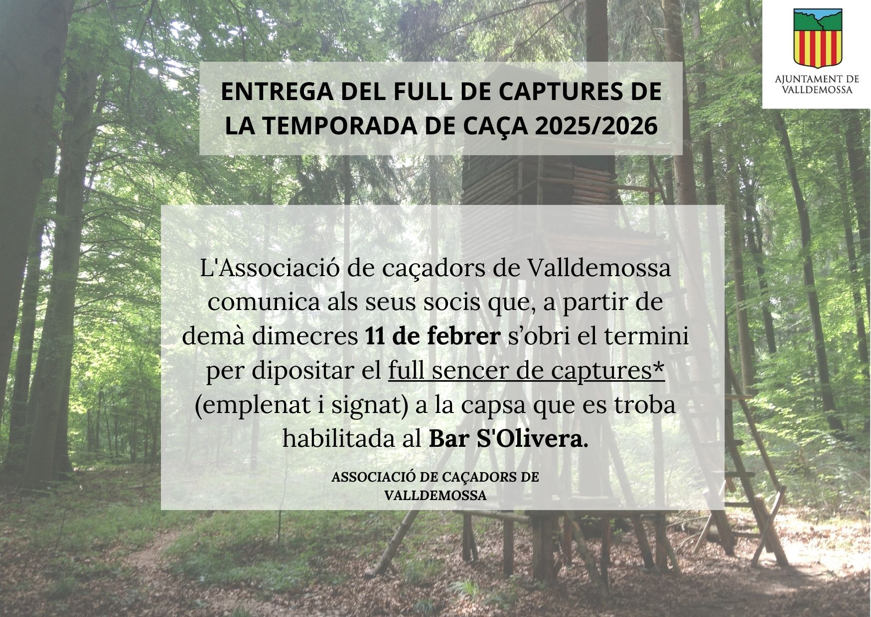 Entrega del full de captures de la temporada de caça 2025/2026