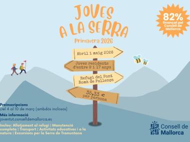 El Consell de Mallorca organitza i subvenciona amb un 82% el programa «Joves a la Serra – Primavera 2026», a través de quatre estades de tres dies i dos nits, per a joves d’entre 9 i 17 anys a la Serra de Tramuntana – Pollença.