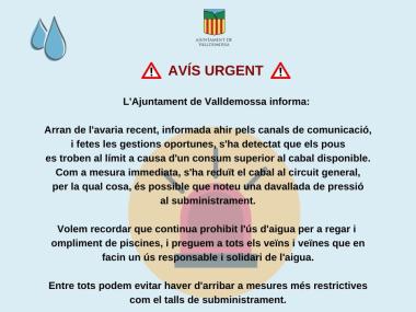Entre tots podem evitar haver d'arribar a mesures més restrictives com el talls de subministrament.