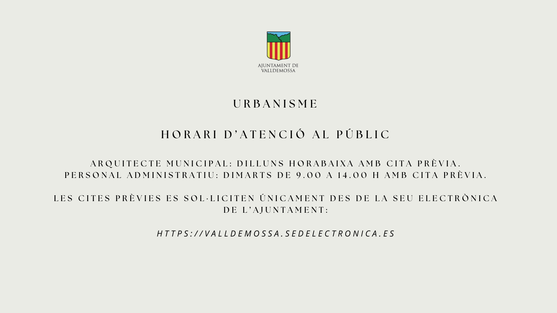 Nou horari del servei d'urbanisme de l'Ajuntament de Valldemossa