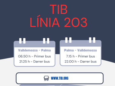 A partir del diumenge 1 de març, es modifiquen els horaris de la Línia 203. S’afegeix una sortida Palma -Valldemossa a les 7.15 hores.