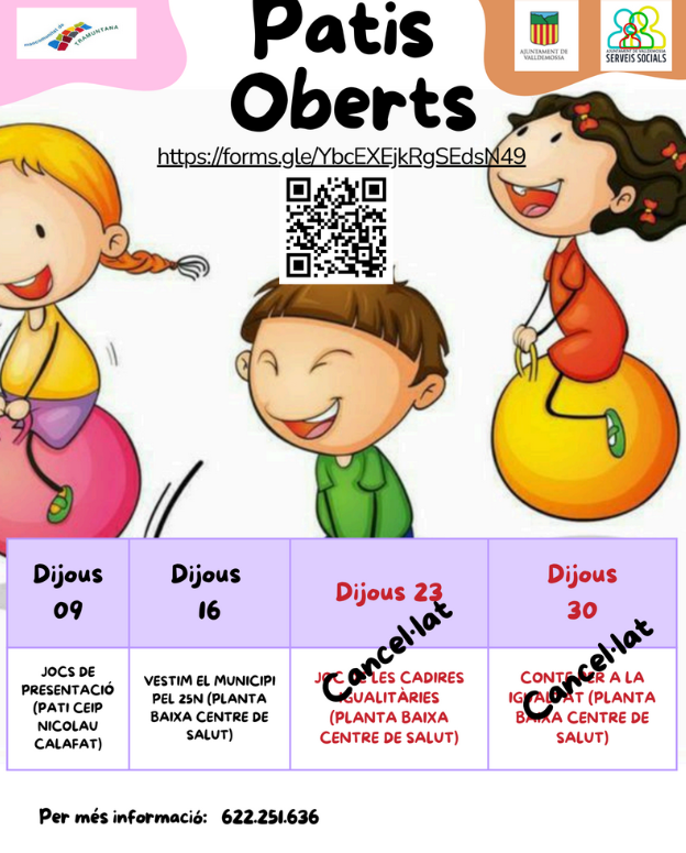 Us informem que l’activitat de Patis Oberts prevista per al dimecres 30 d'octubre queda cancel·lada. El motiu és la manca d'inscripcions al taller proposat i la baixa de la professional encarregada de dinamitzar l'activitat.